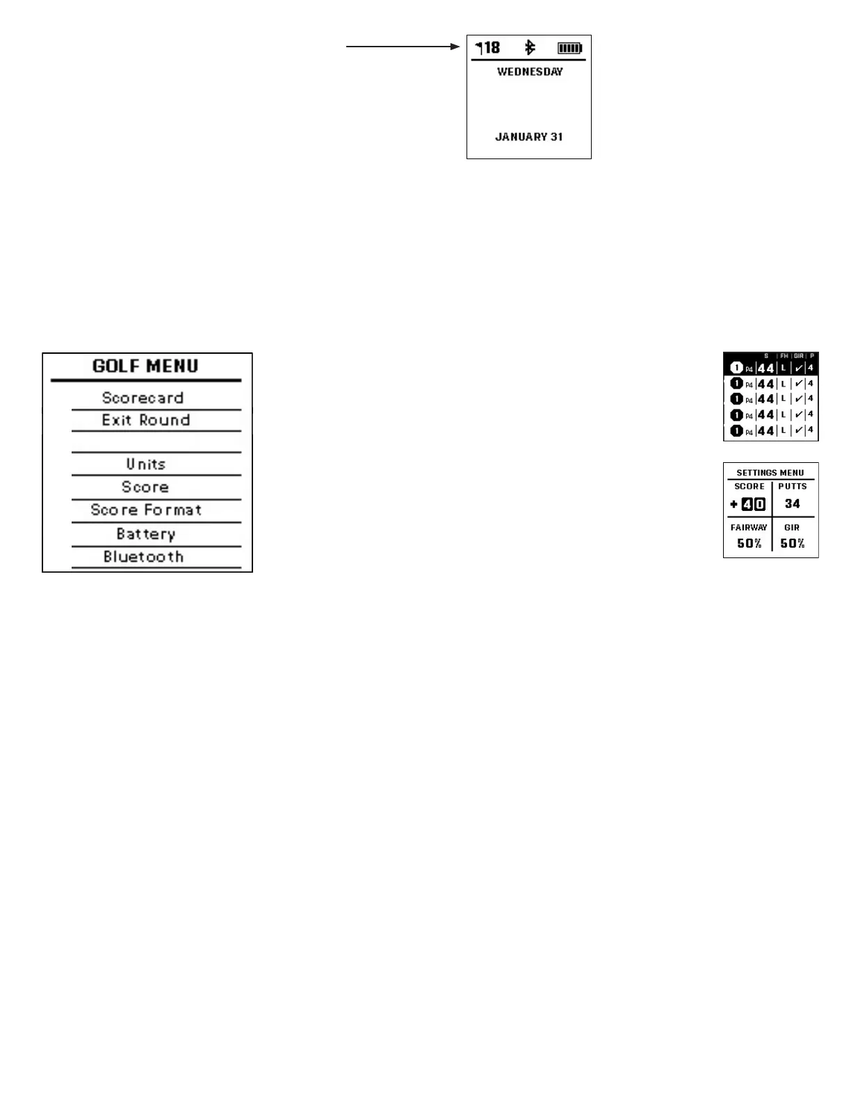 Si está en el modo Play Golf y desea ir al menú Golf, pulse y mantenga pulsado el botón SELECCIONAR (a la derecha) hasta que aparezca el menú en la