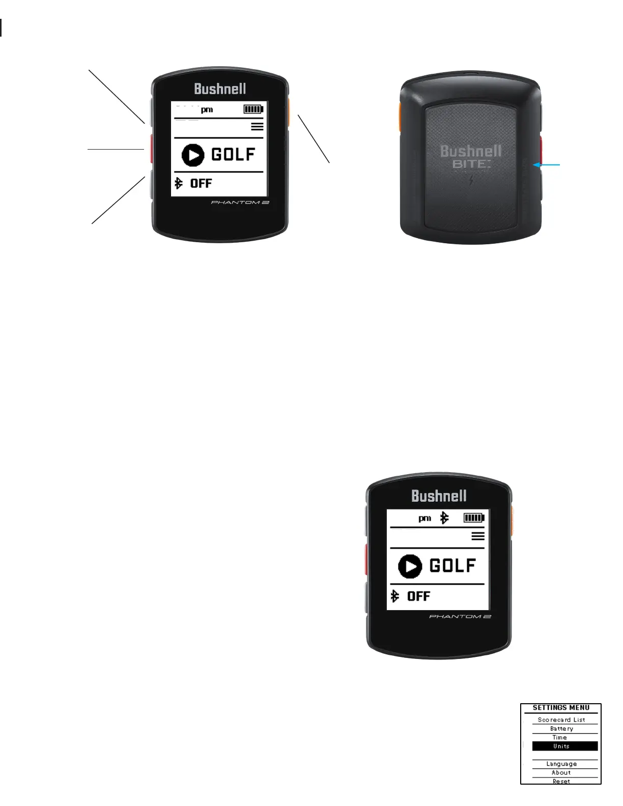 1. Botão LIGAR: Pressione para ligar. No estado LIGADO, pressione para MENU. No estado LIGADO no modo JOGAR GOLFE, pressione para