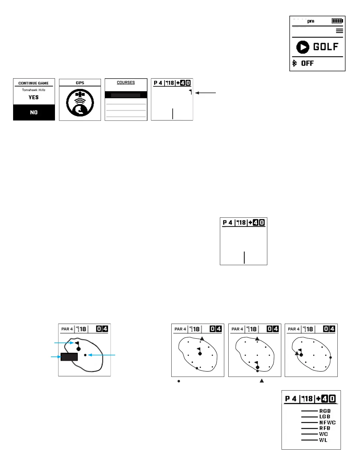 [SELECT](選択)ボタンを押すと、ホールごとのハザード情報が表示されます。これは、現在のコースの特定のホ