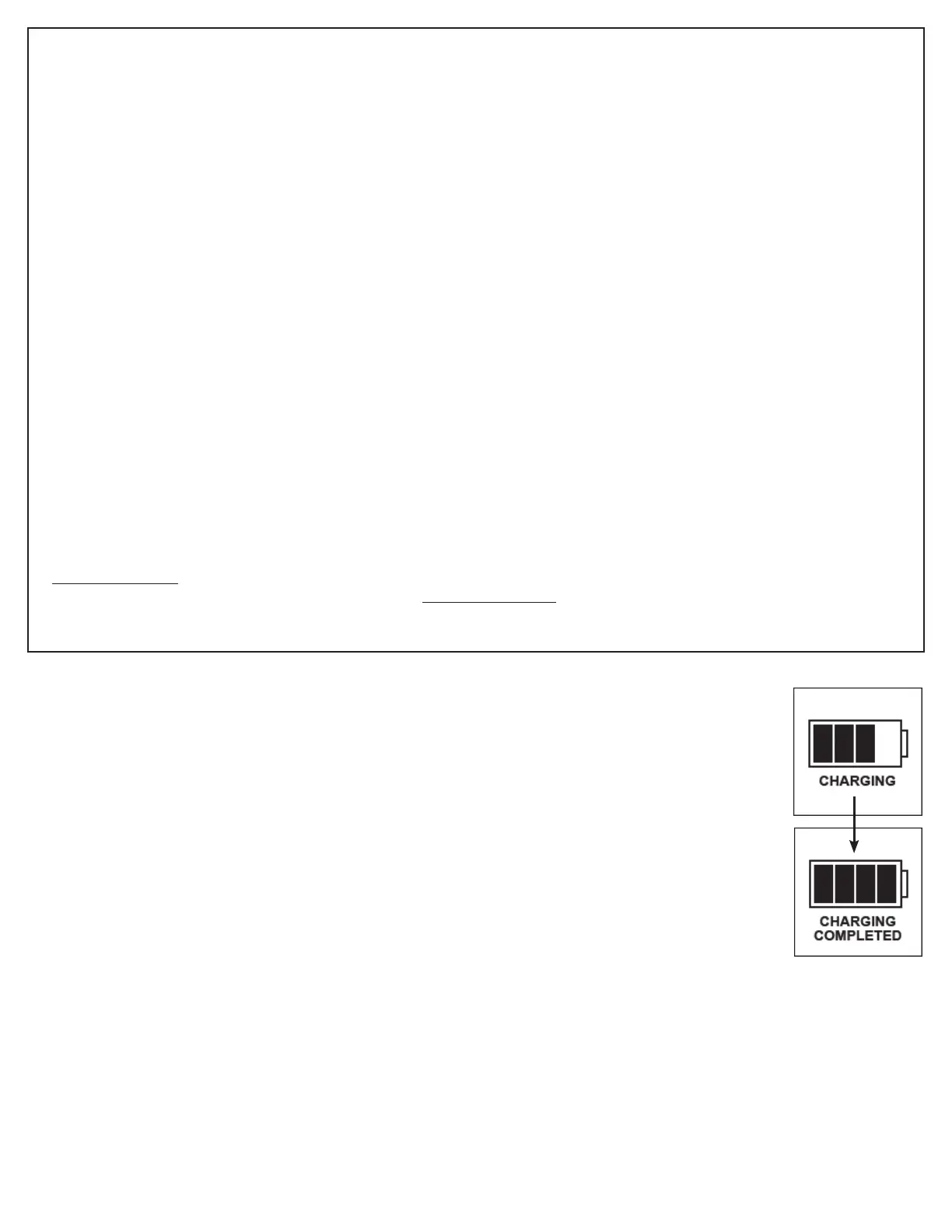 partial charge remains) and ready to use, “CHARGING COMPLETED” will be displayed (press PWR to check charge