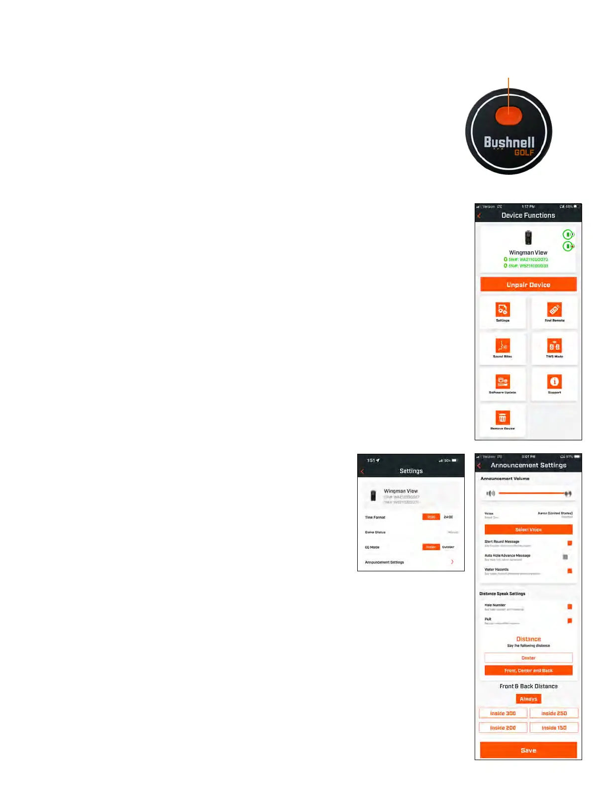 aplikasi. Buka layar depan Aplikasi Seluler Bushnell Golf dan tahan tombol “Bushnell Golf” pada remot sampai
