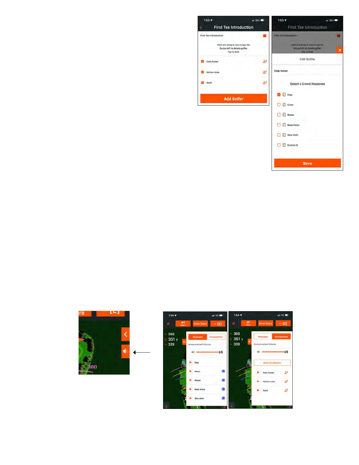 6. Ketuk ikon Pengeras Suara untuk mengubah Respon Penonton untuk Pengenalan Tee Pertama pemain tersebut.