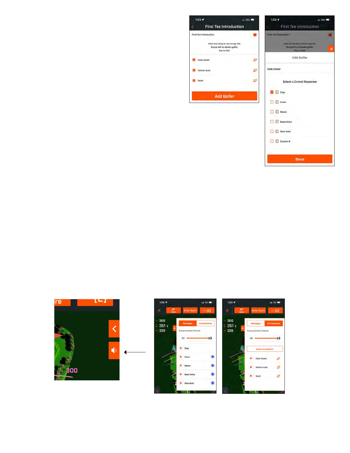 6. Tap the Speaking icon to change the Crowd Response for that player’s First Tee Introduction.