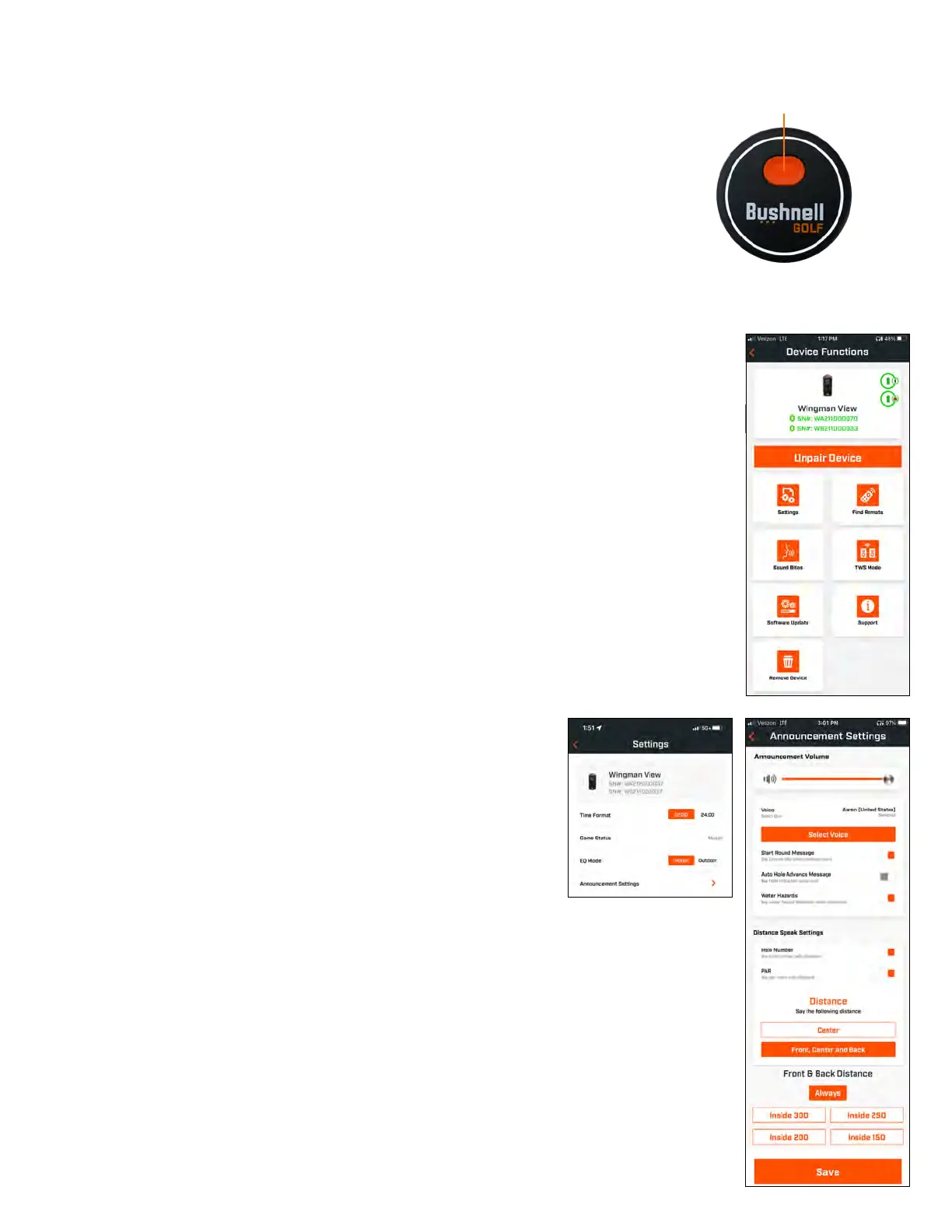 igen. Åbn startskærmen i Bushnell Golf-mobilappen og hold knappen “Bushnell Golf” nede på fjernbetjeningen,