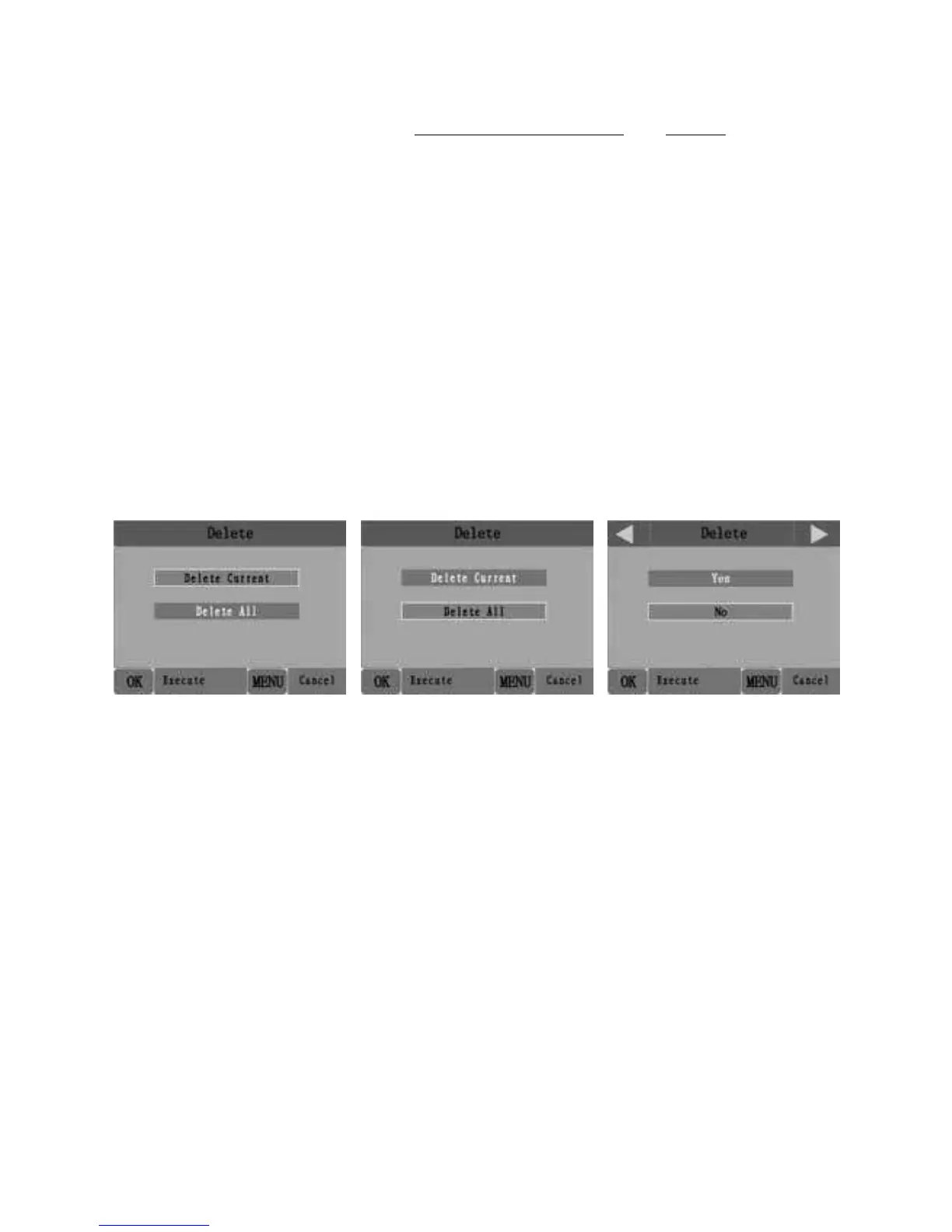 « Delete Current »), ou chaque fichier photo et vidéo sur la carte