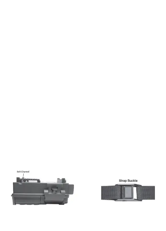 Trail Camera. Thread the end of the strap through the buckle. Fasten the belt securely