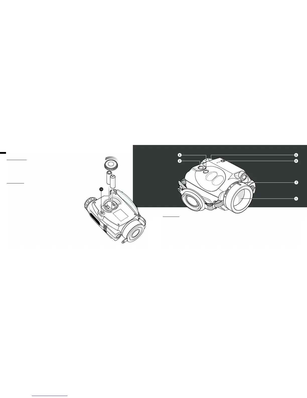 pressing the “ON” button (2). The objective lens cap has a pinhole