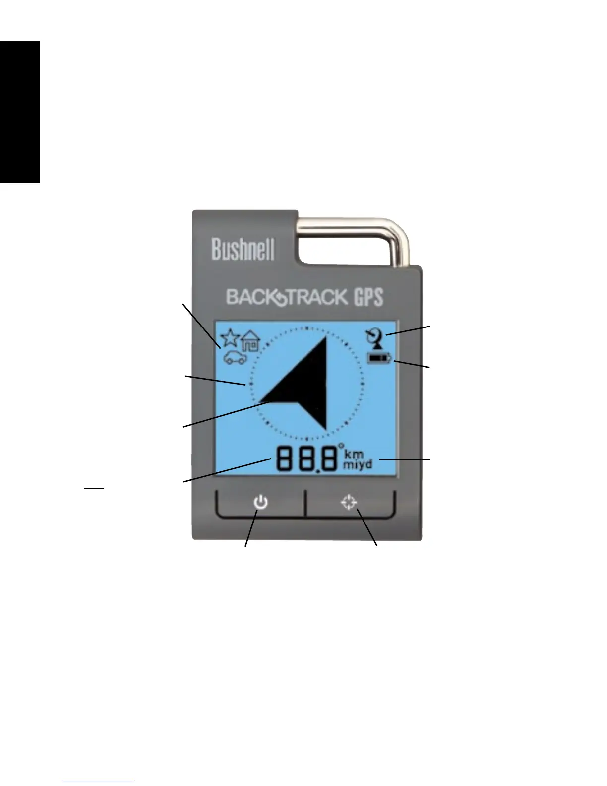 Symbole und Daten gleichzeitig auf dem Display des BackTrack erscheinen.