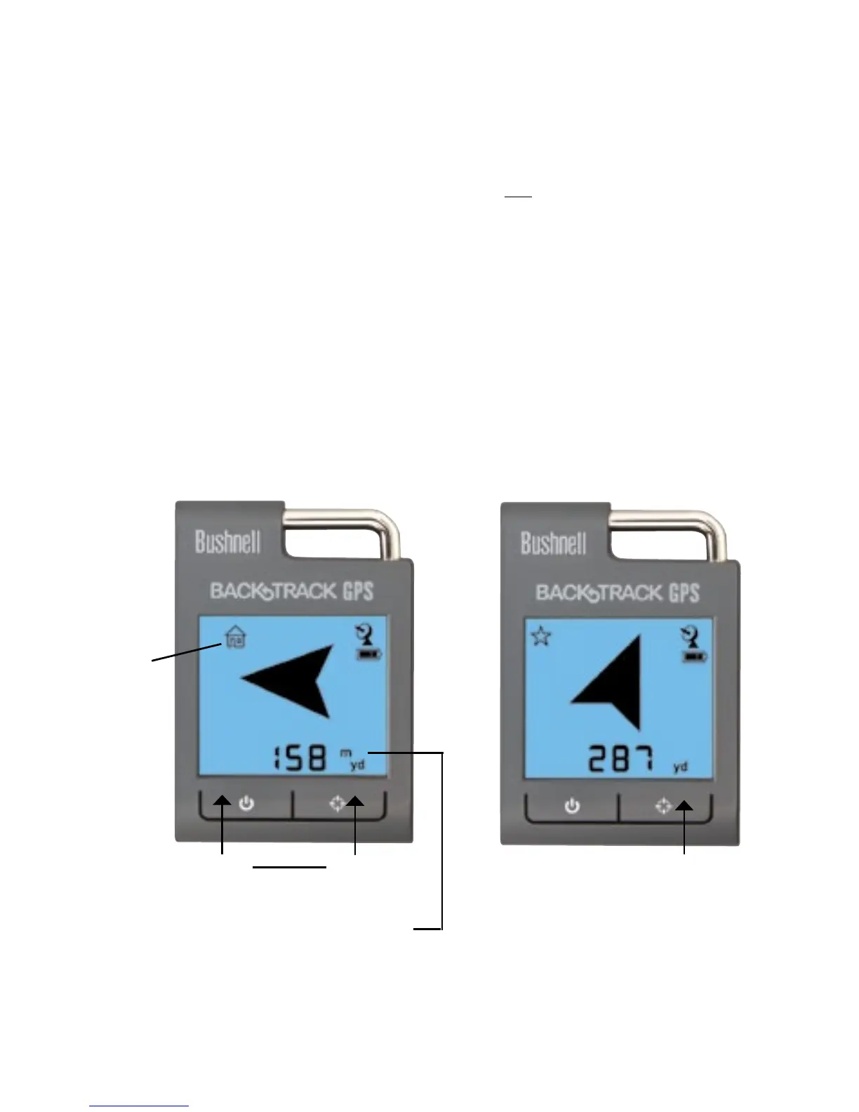 to “m”. The BackTrack will automatically switch from yards to miles (or meters to km) for longer distances. It can