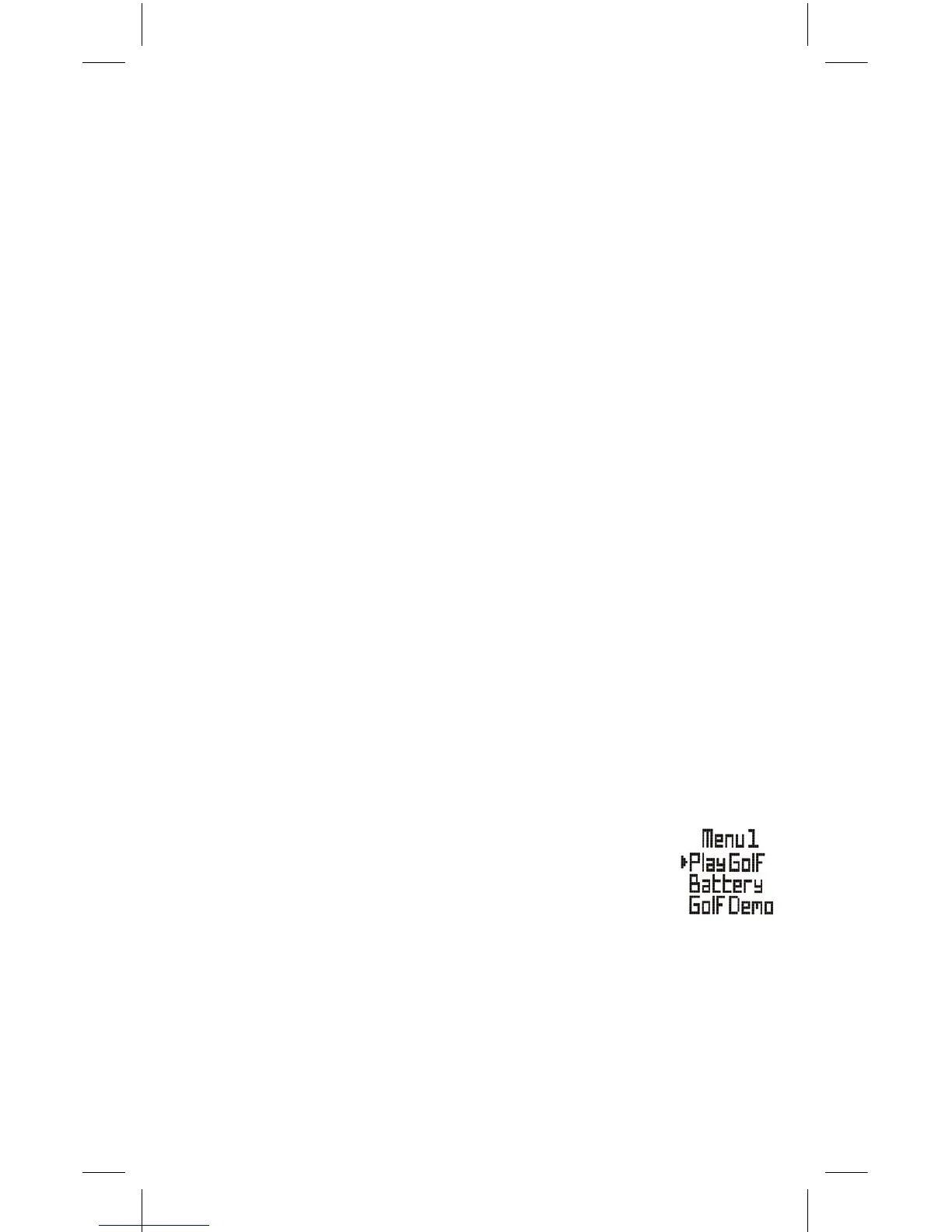 • Menu1(Menú1): Play Golf* (Jugar al golf), Battery (Batería), Golf Demo