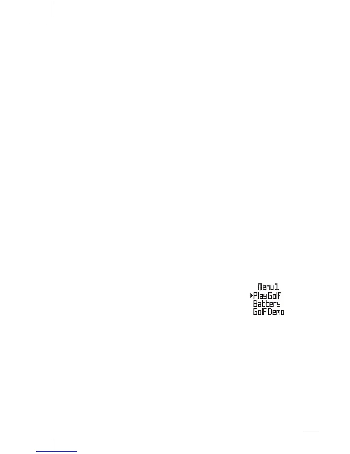 • Menü1: Play Golf*, Battery, Golf Demo (Golf spielen, Batterie, Golf-