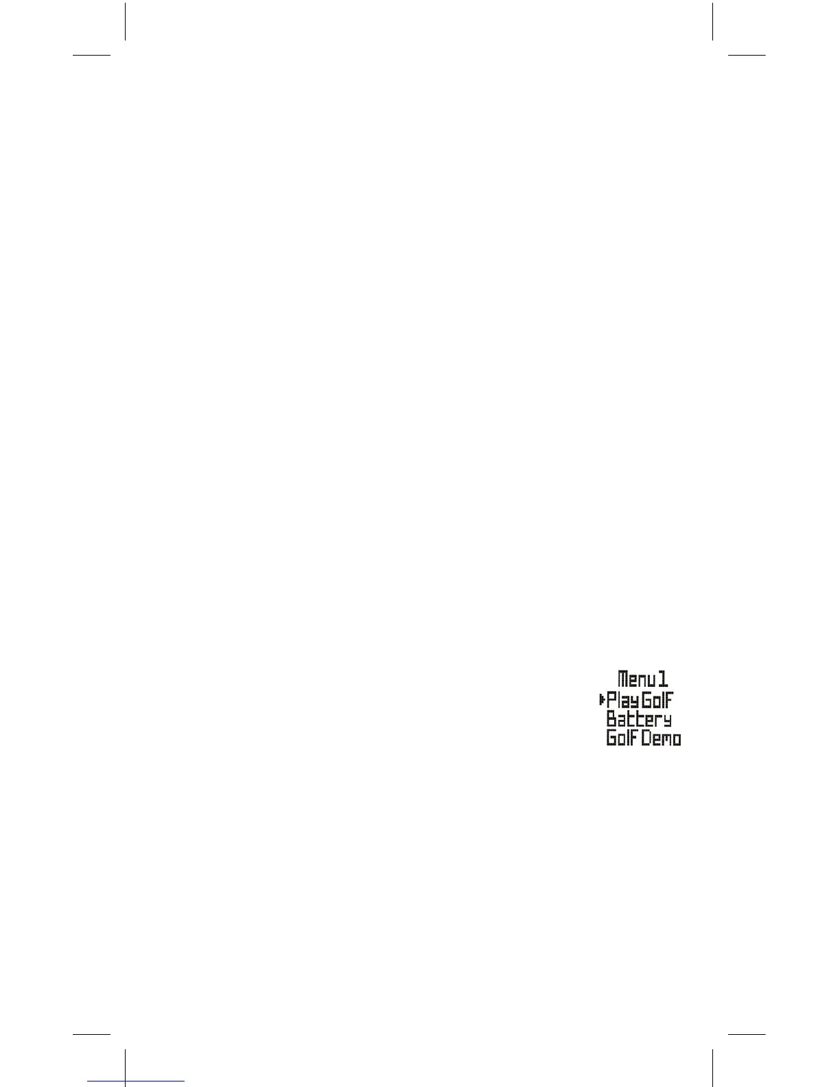 • Menu1: Play Golf*, Battery, Golf Demo