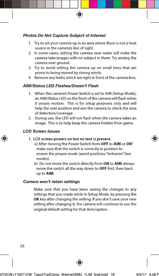 Bushnell 66061A - Troubleshooting Settings and Performance; Subject Not Captured; Settings Not Retained