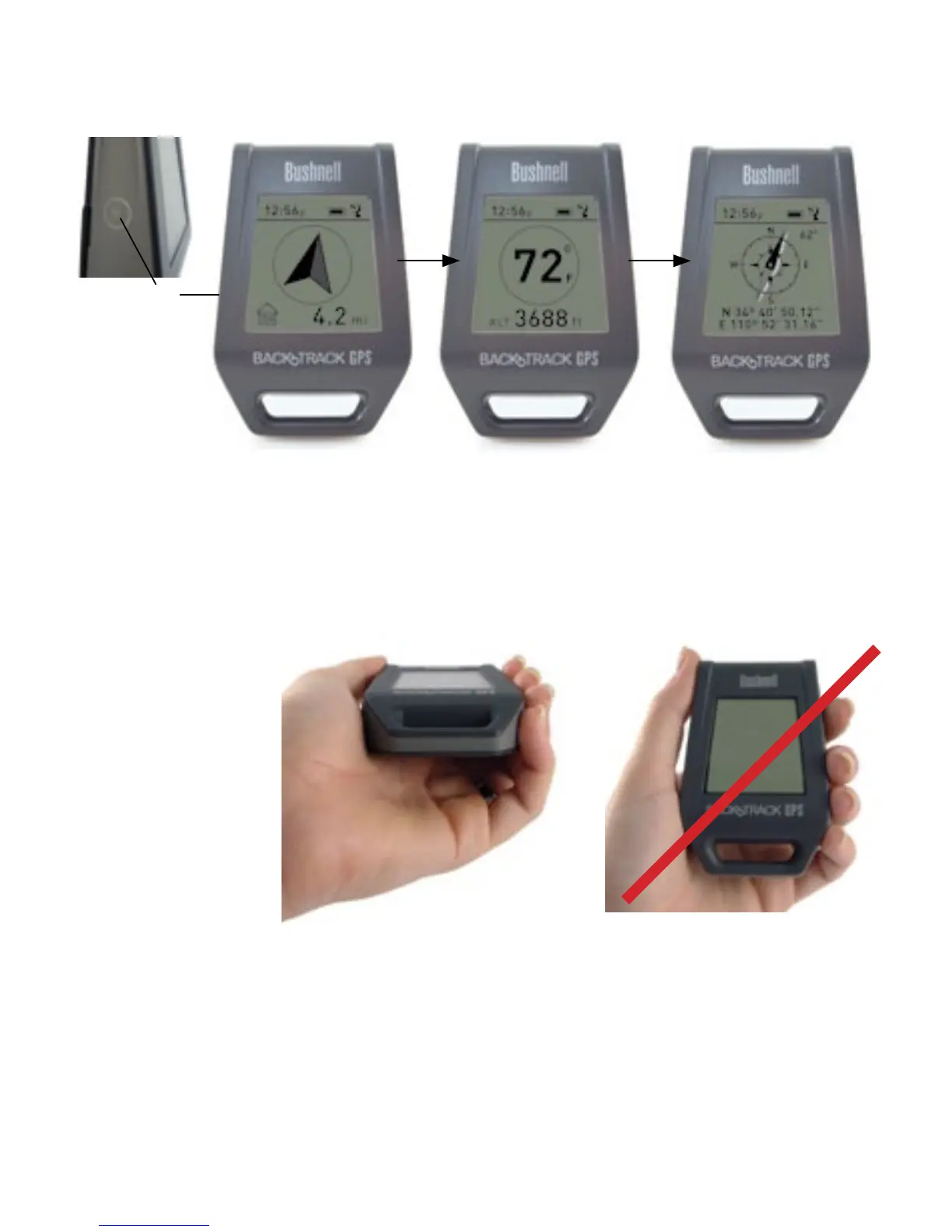 Pour assurer une exactitude directionnelle, tenez le BackTrack horizontalement en face de vous (parallèle au sol) et