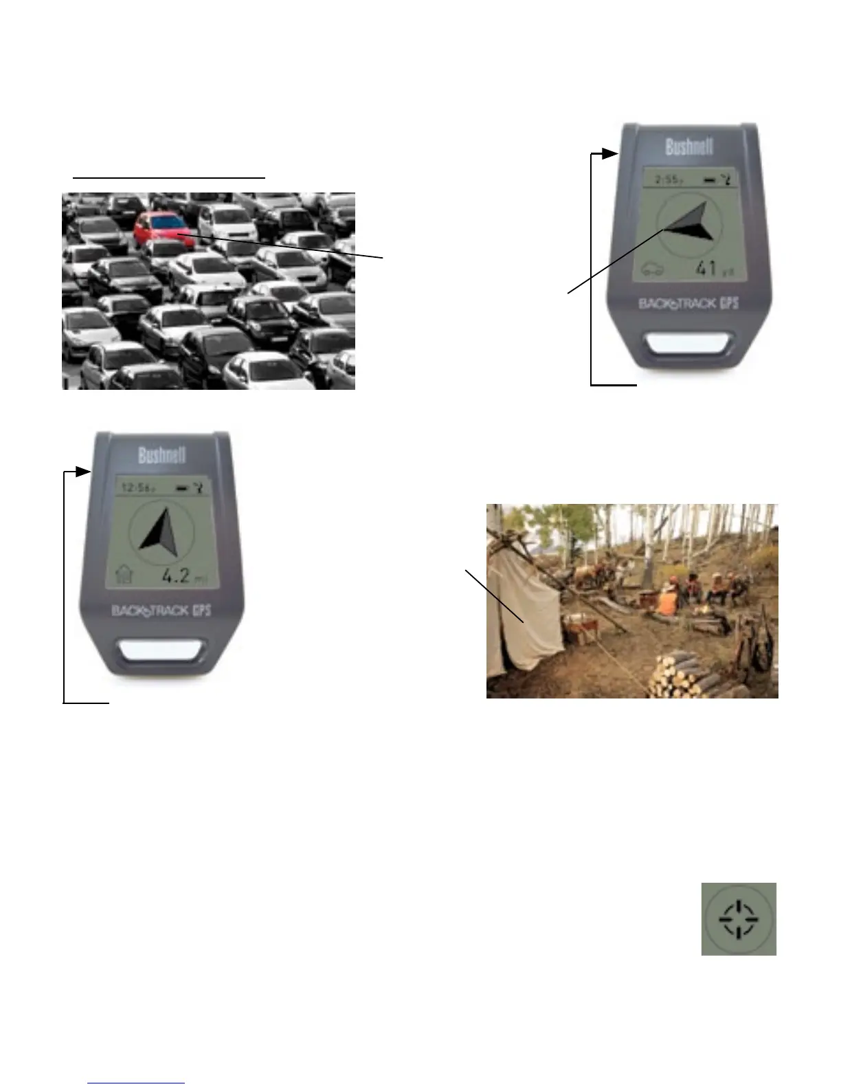 9. Per tornare all'ultima località marcata, basta accendere il BackTrack, e il display indicherà la direzione e la distanza