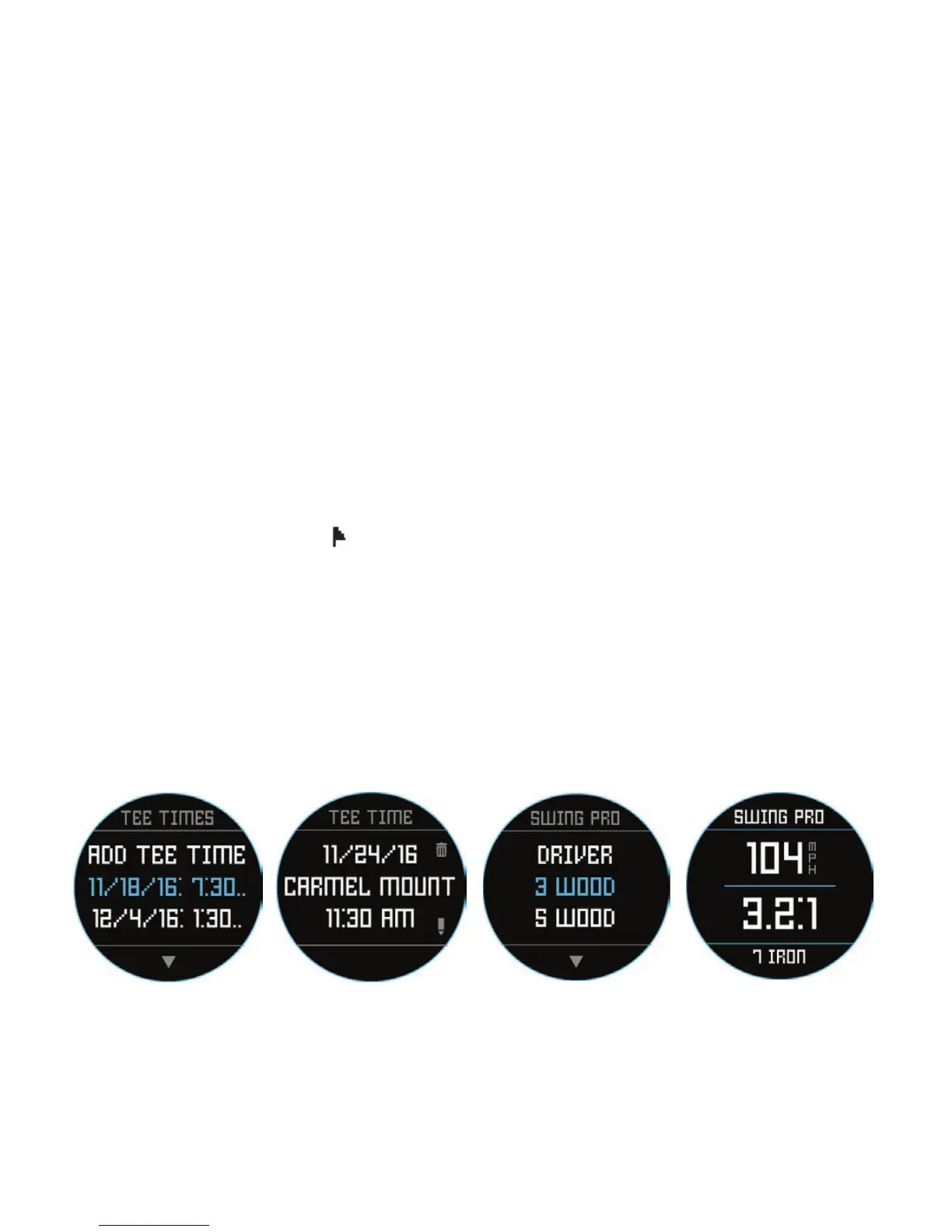 La fonction Tee Time permet à l’utilisateur de planier et de stocker plusieurs heures de depart sur son appareil. Un départ