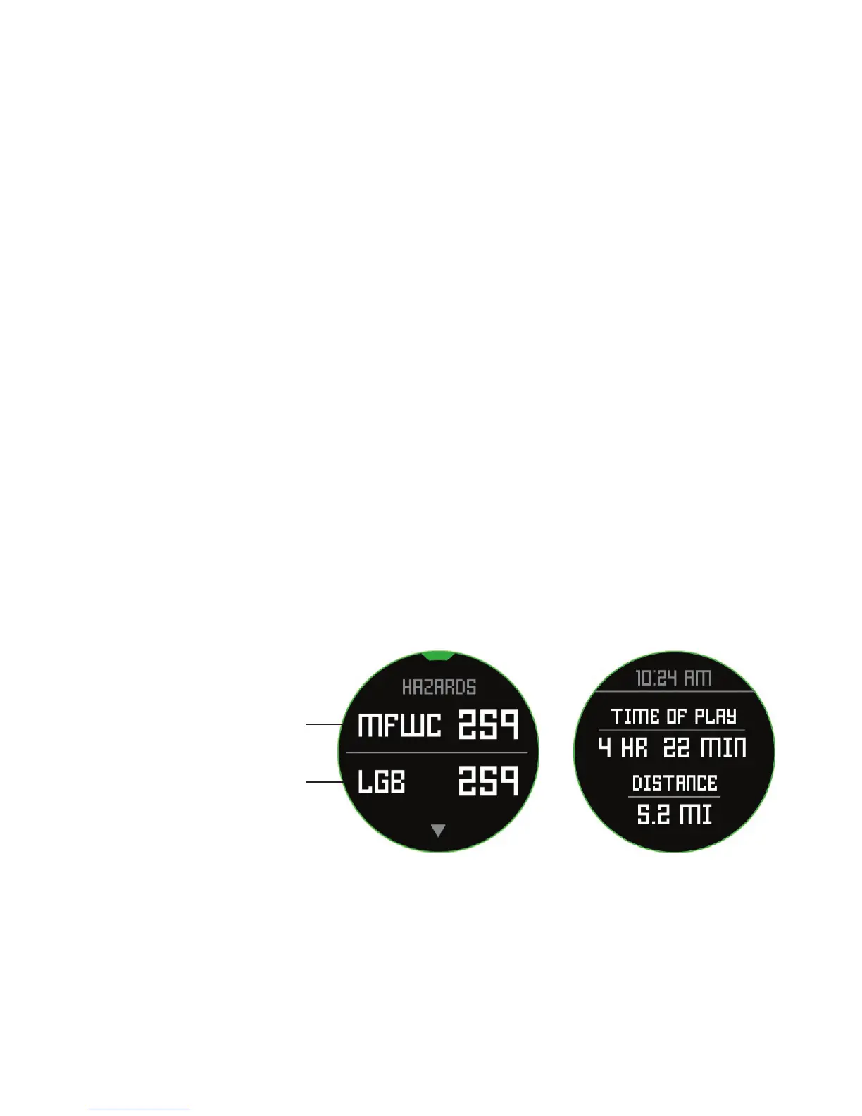 Los peligros dentro de la aplicación iGolf se muestran en forma de abreviaturas. Estas abreviaturas se denen según