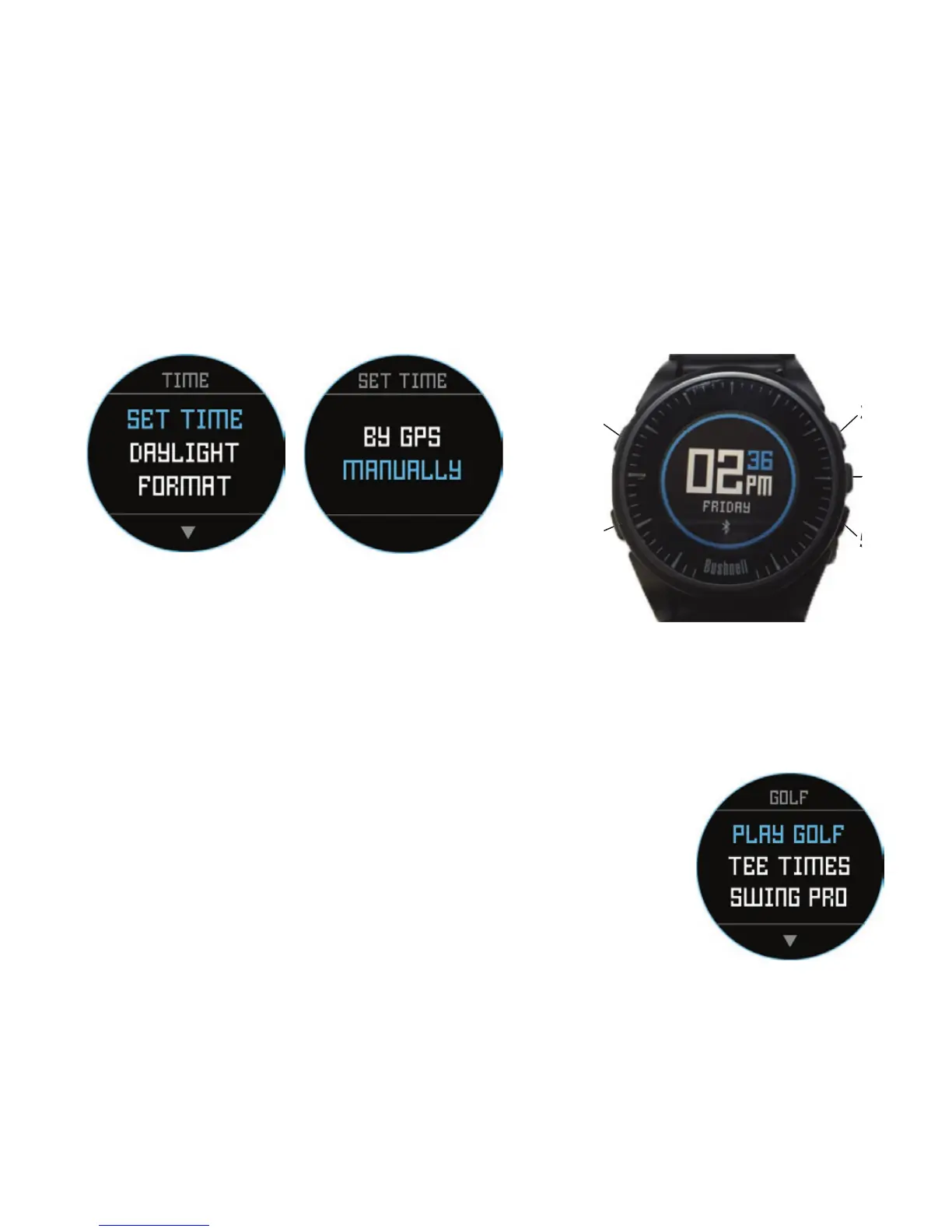 the time and the date will be set via your longitude position. When BY GPS is selected (Fig 5), other GPS features (Play Golf,