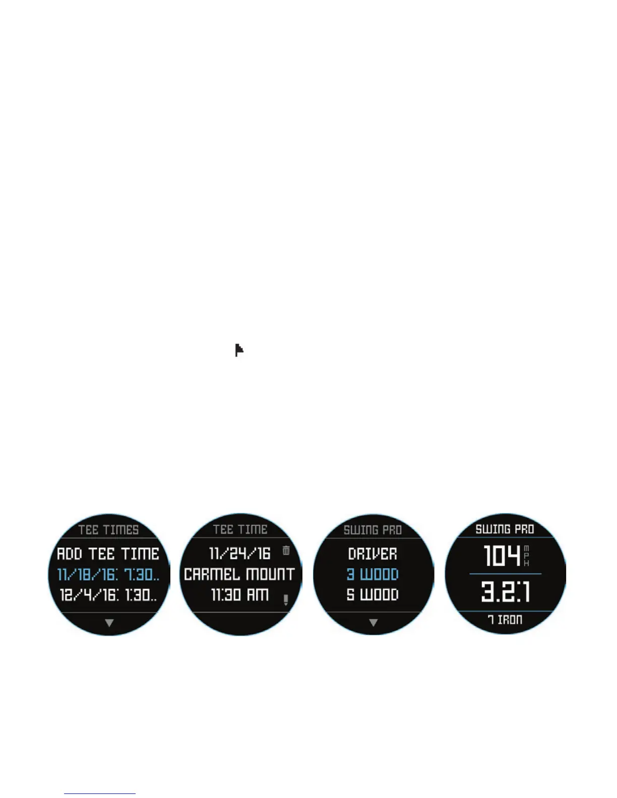 impostato sia dall'orologio che dall'applicazione. L'orologio visualizza no a 7 orari al tee, mentre l'applicazione memorizza tutti gli