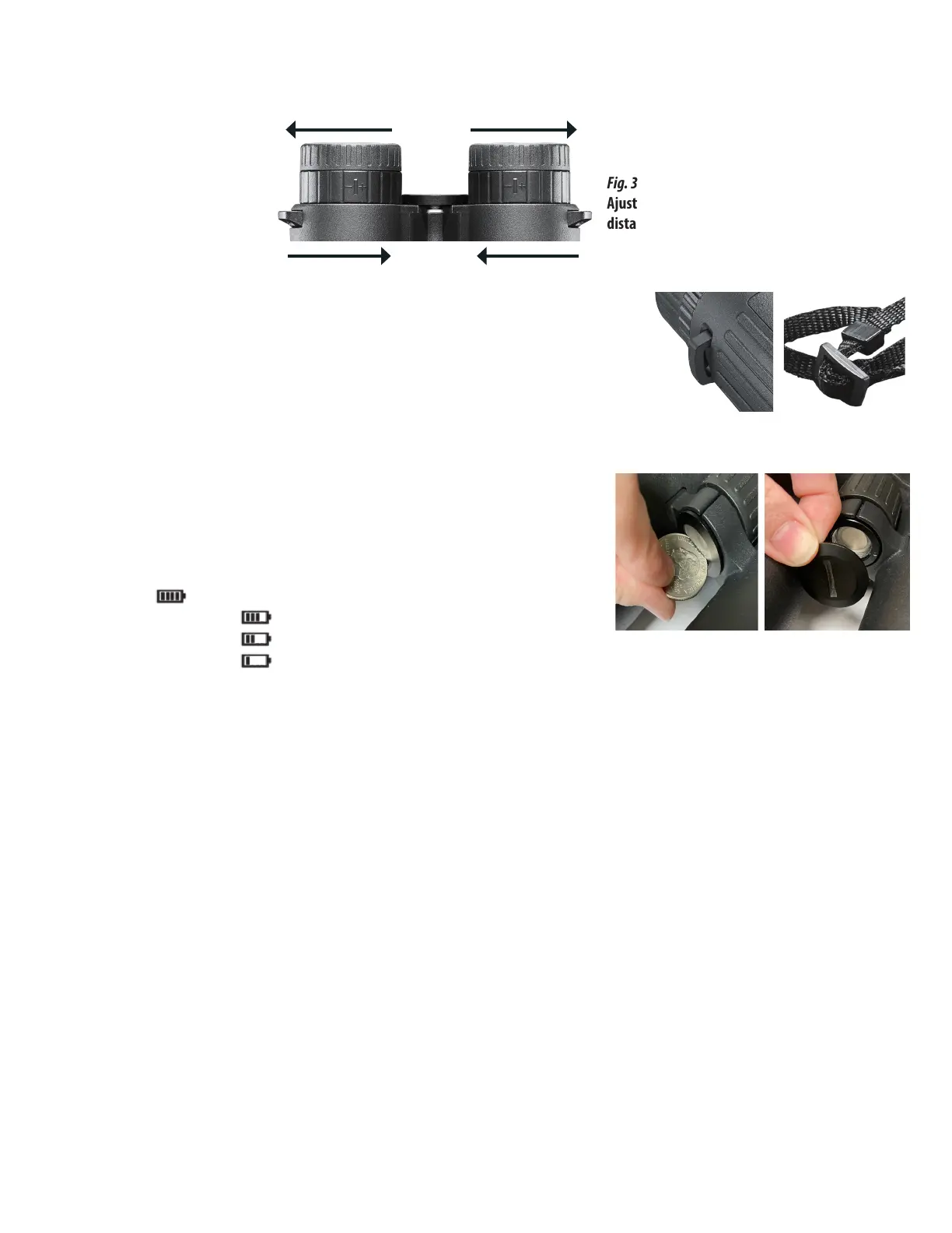• Sostenga rmemente ambos lados de los binoculares de telemetría. Mueva el lado derecho y el lado izquierdo más cerca o más lejos entre sí (Fig. 3) hasta que vea una sola imagen sin