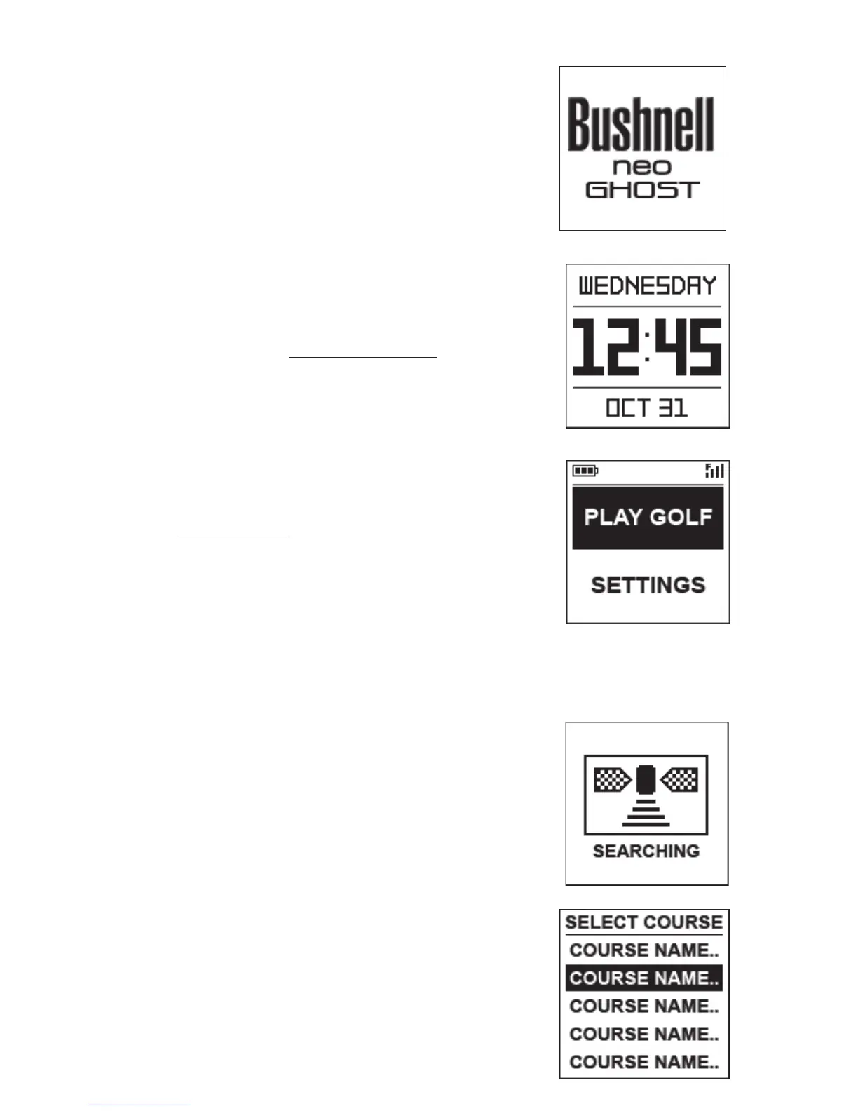 PLAY GOLF (GIOCA A GOLF) o SETTINGS (IMPOSTAZIONI).