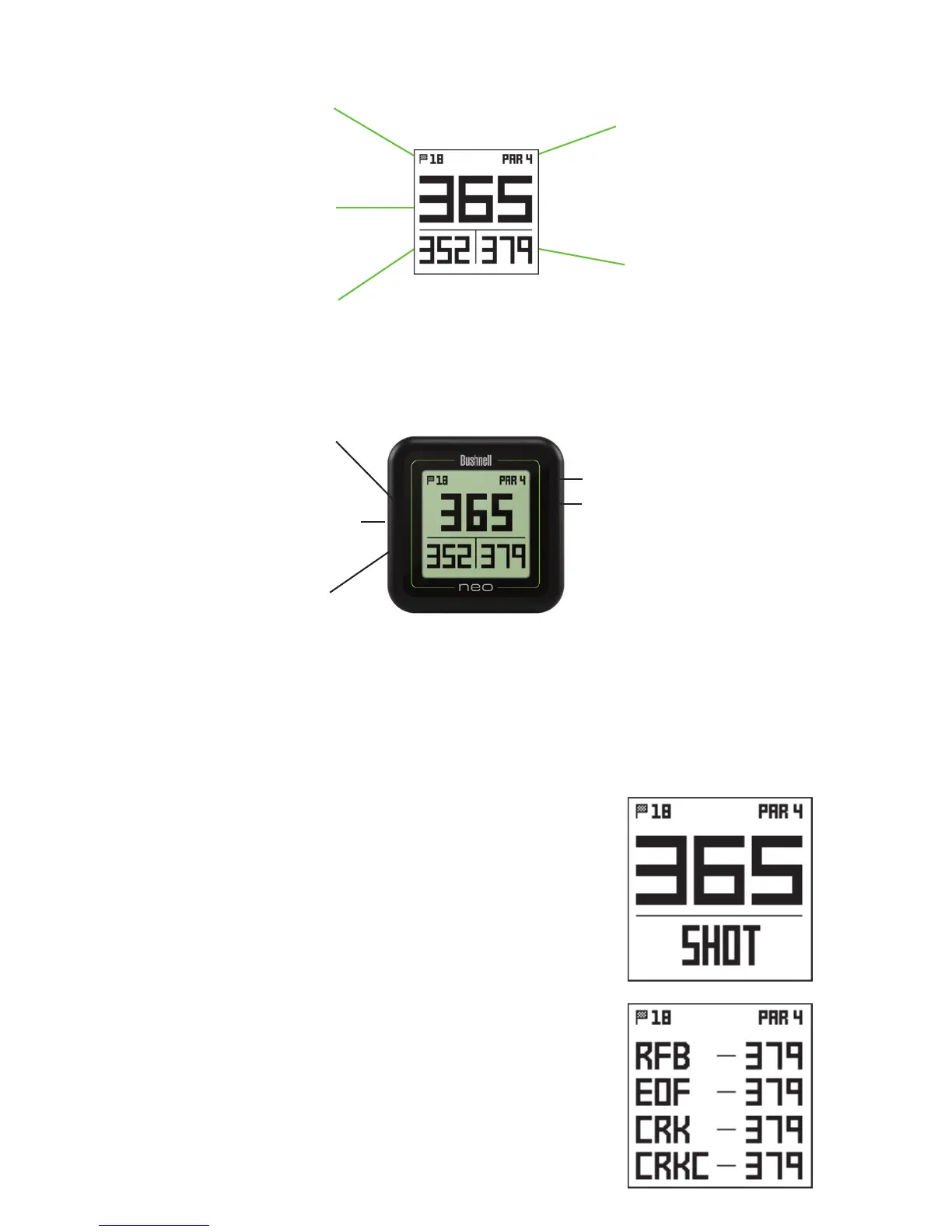 a sinistra), par della buca (in alto a destra) e le distanze dal