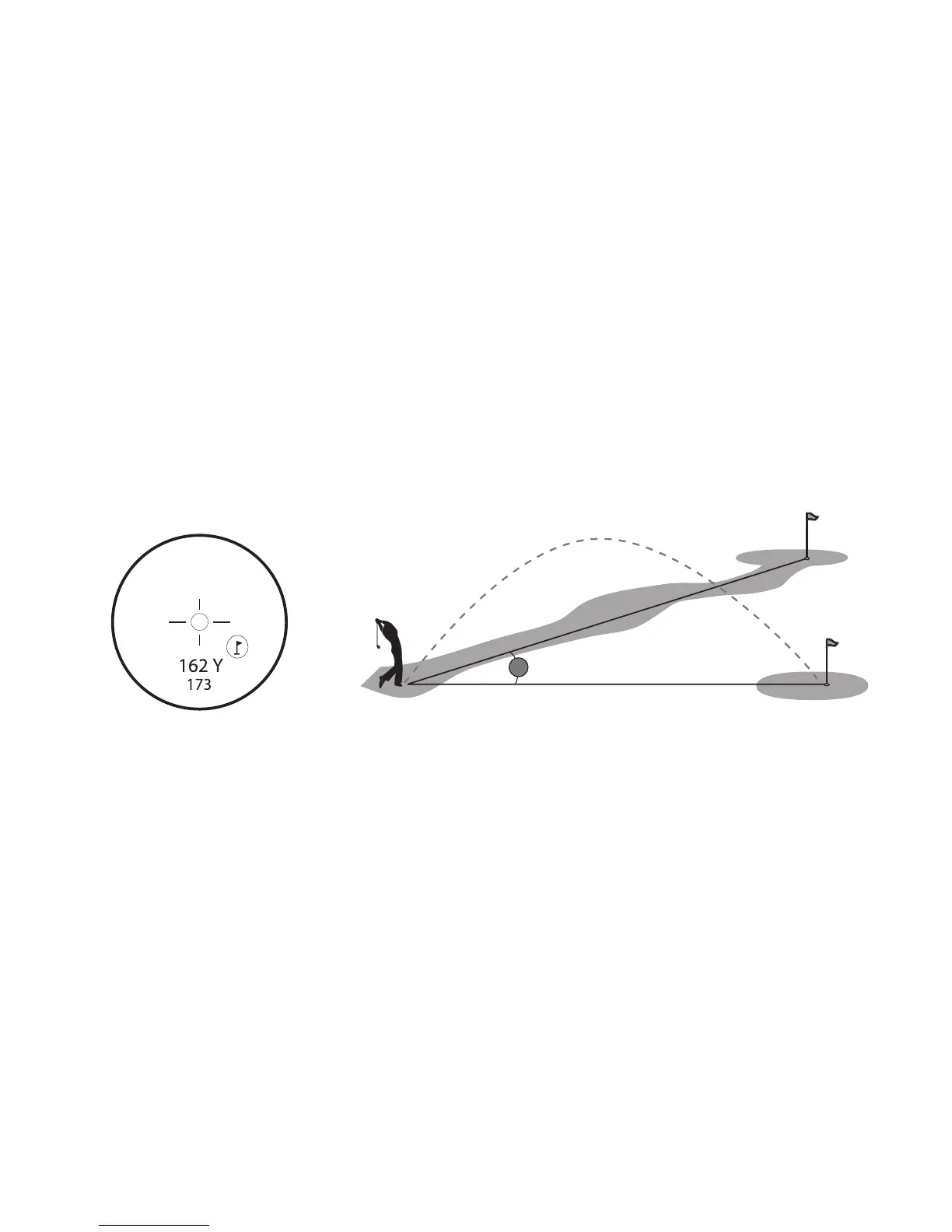 la distance compensée serait de 158m (173yards). Si le mode Slope est activé, l'achage indiquerait les