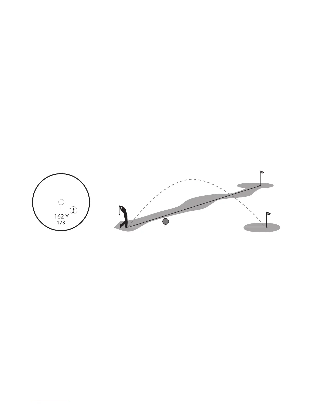 Distanz 162 Yards, obwohl sie sich auf einem Hang bendet.