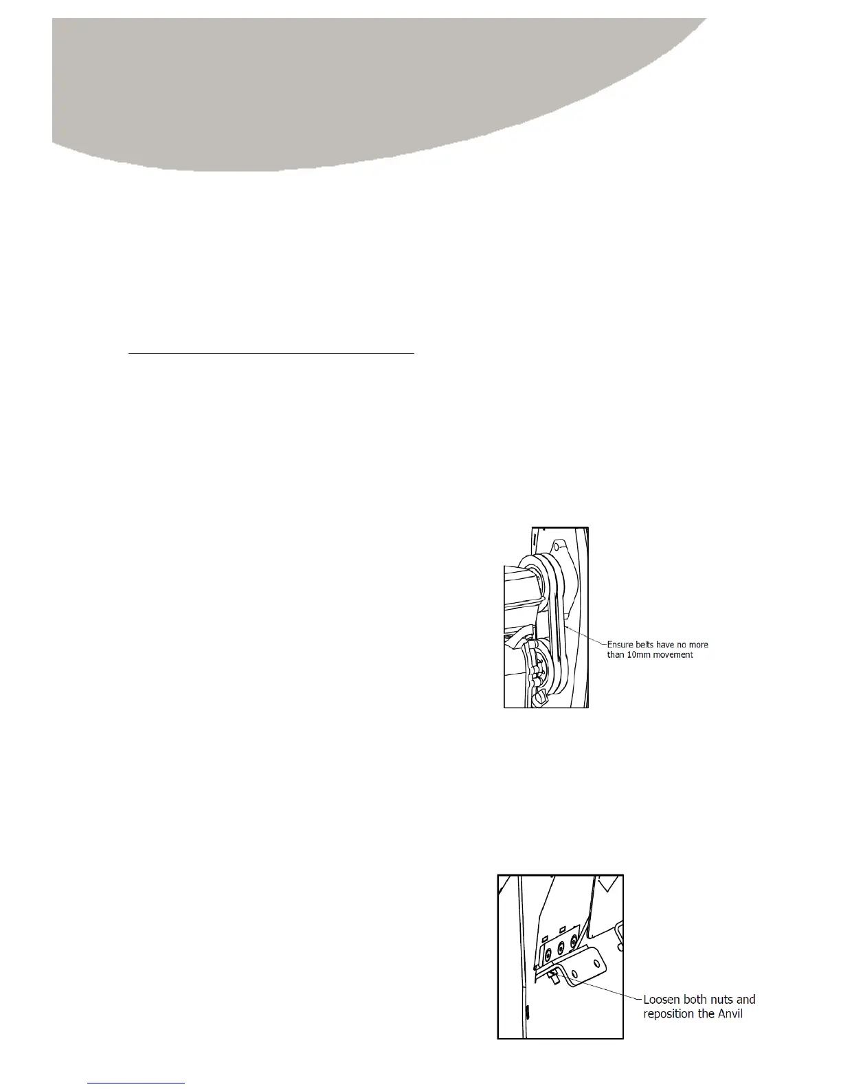 - Check the belt tension. The belts will stretch when