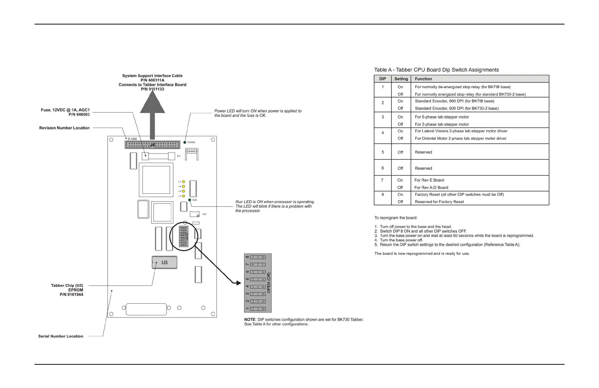 Figure B-14: Tabber CPU Board DIP Switch Settings and Programming