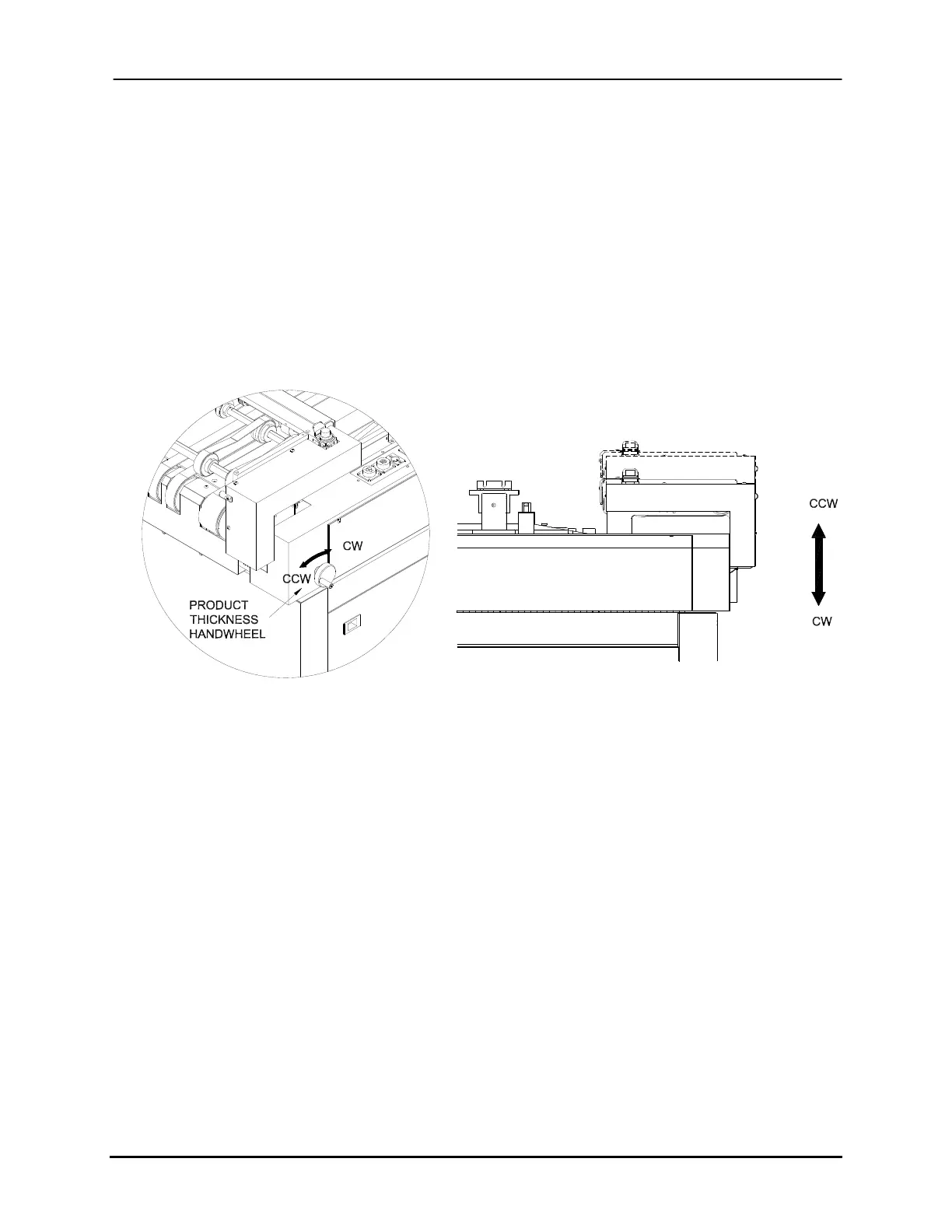product by rotating the product thickness handwheel counter-clockwise (CCW).