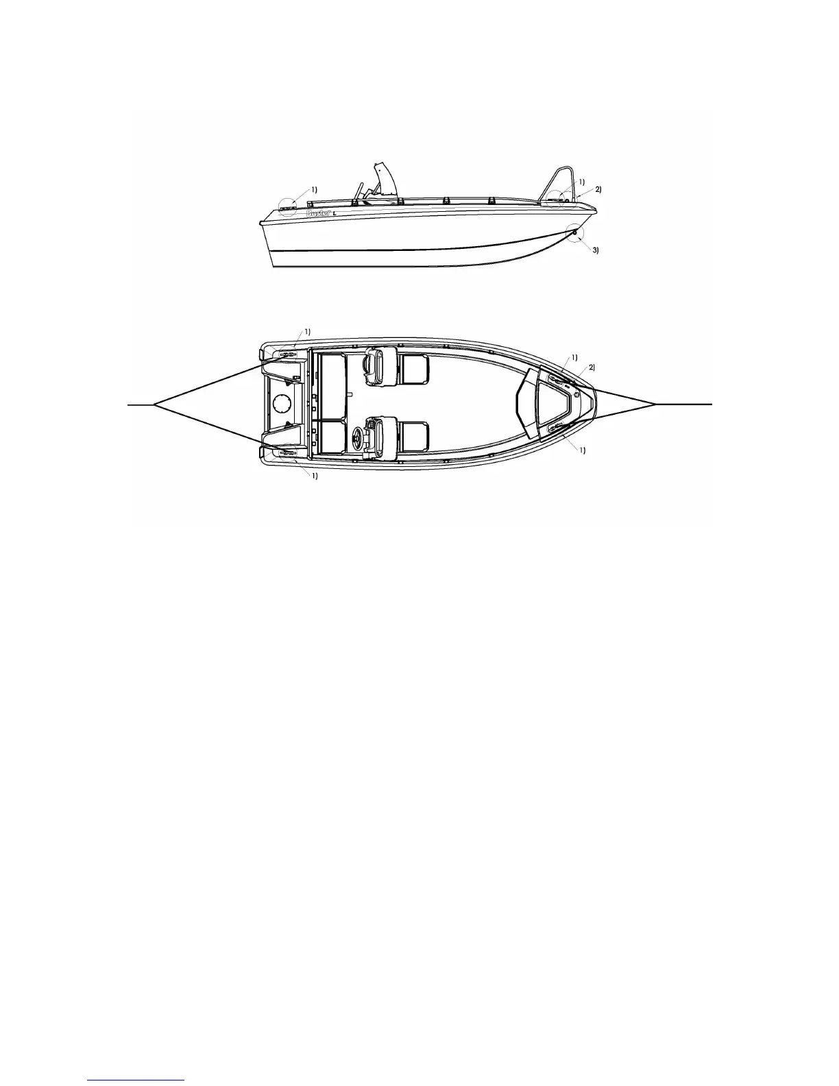 attaching points cannot bear the weight of the boat when lifting. Fasten the boat