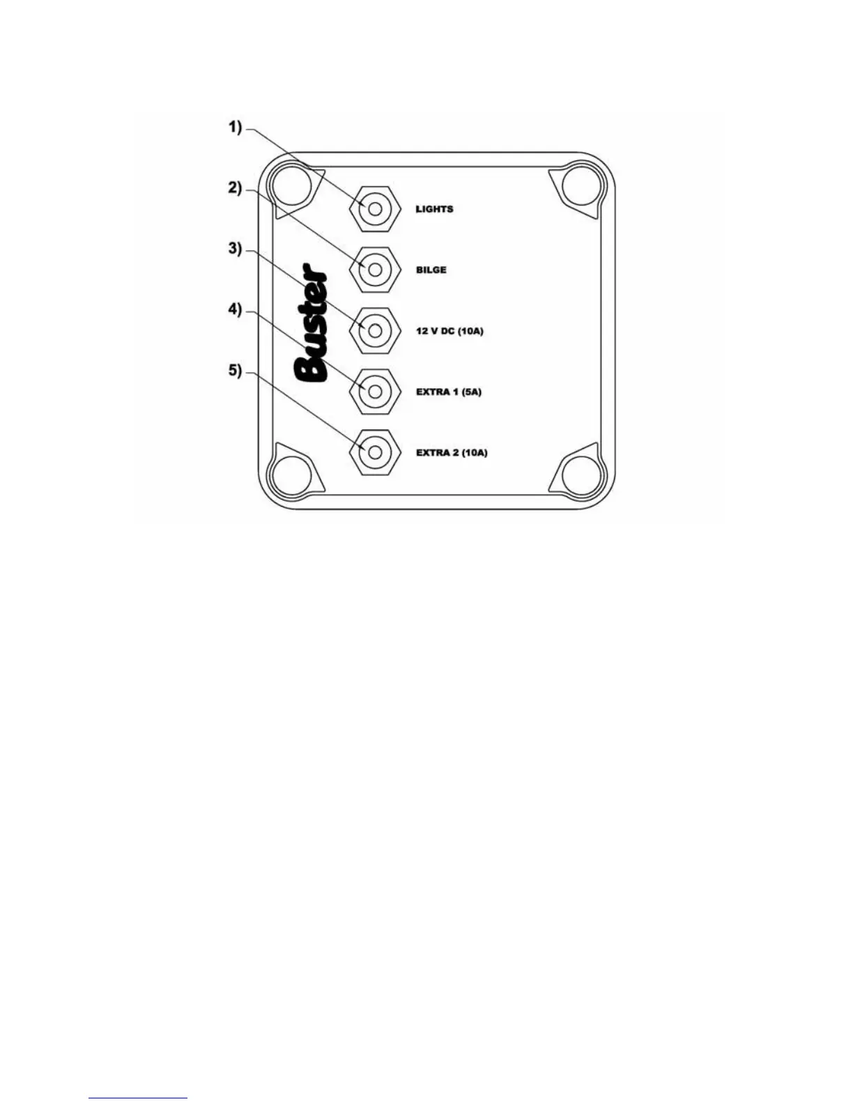 ulosotto 10A (12V+), 4) Ylimääräinen virtapiiri 5A (X1), 5) Ylimääräinen