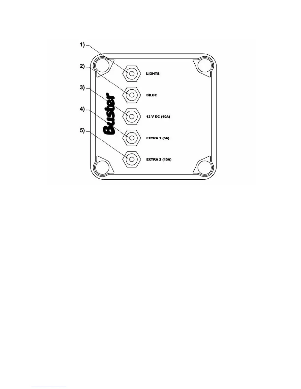 Strömuttag 10A (12V+), 4) Extra strömkrets 5A (X1), 5) Extra strömkrets