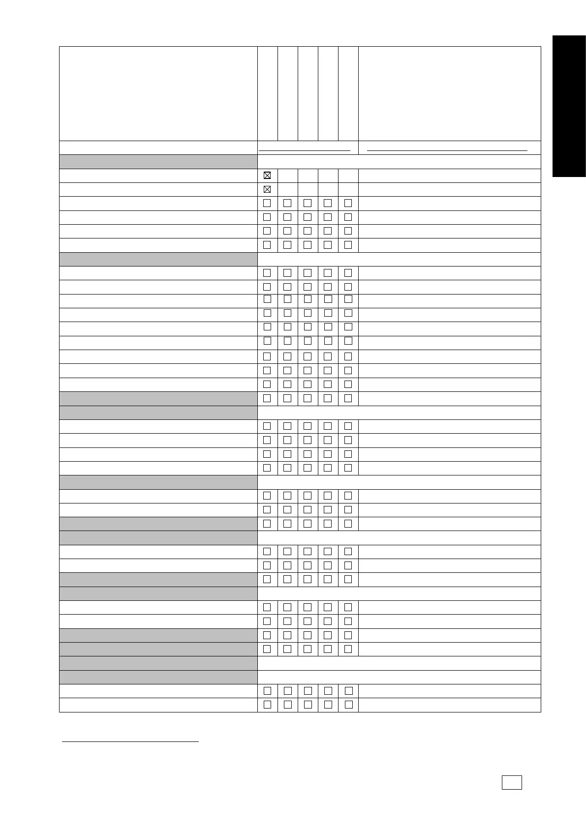Rastita vain yksi kohta rivillä Rastitettujen kohtien oikealla olevat rivit täytettävä