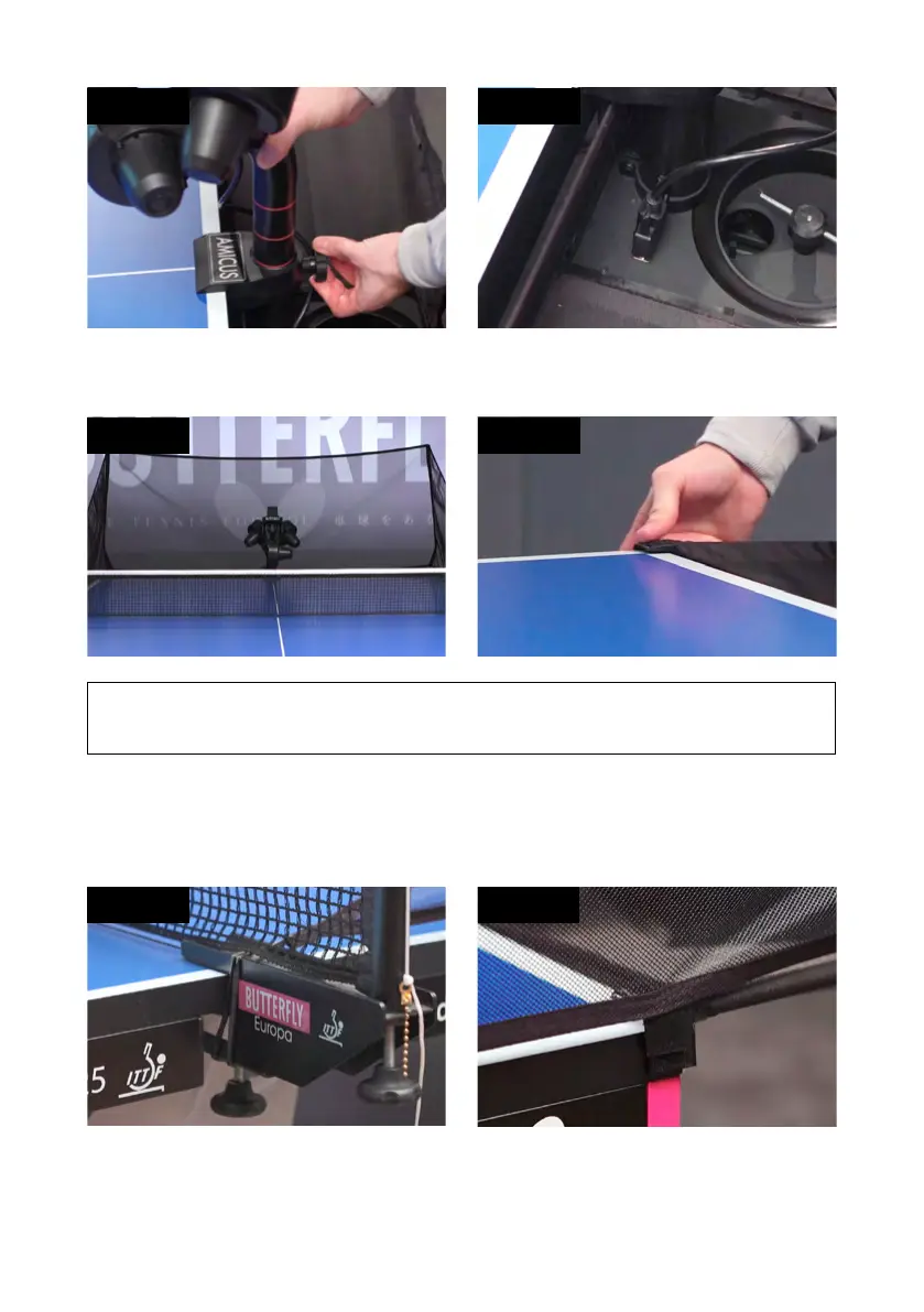 5. Ziehen Sie die seitlichen Ballfangnetze über die jeweilige Seite des Tisches. Führen Sie die Gummi-