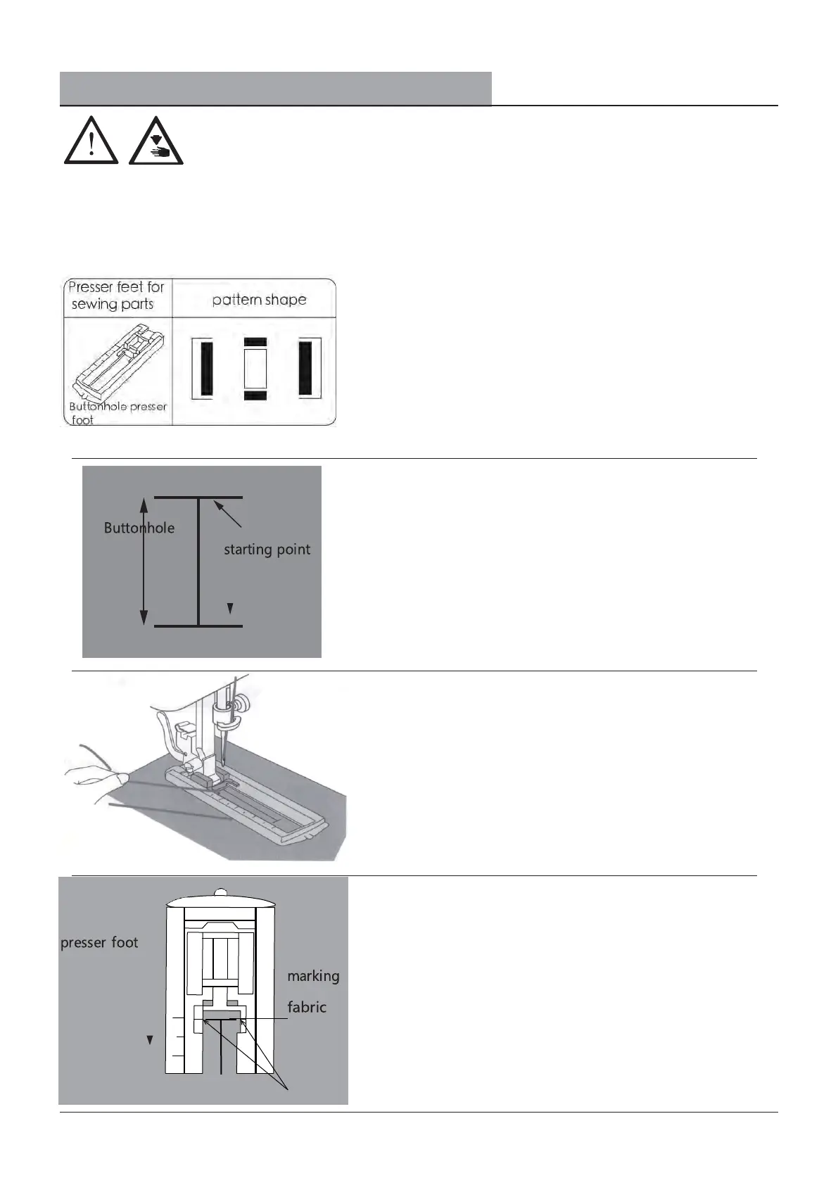 2. Untuk memasang sepatu penekan lubang kancing, silakan