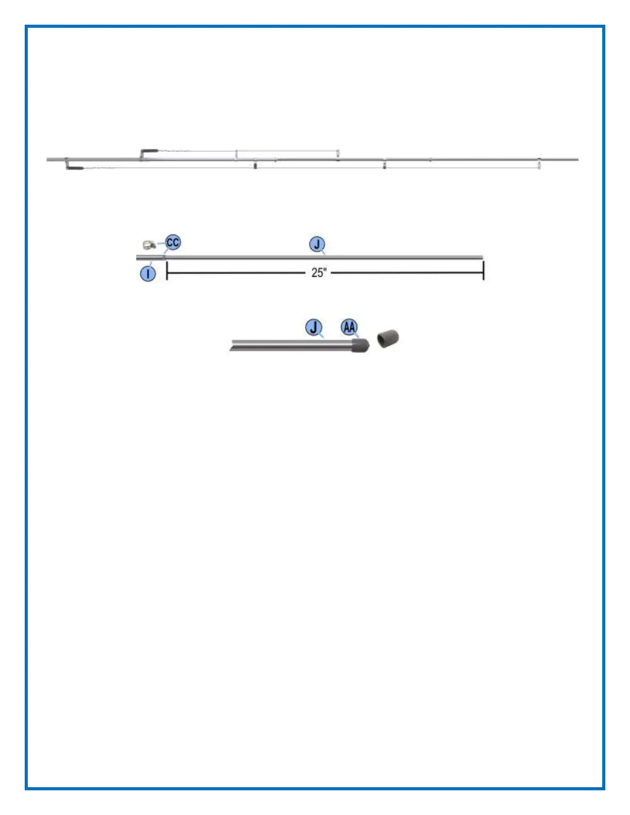 49. Slide the uncapped end of tube (J) into the slotted end of tube (I) until 25 inches extends out