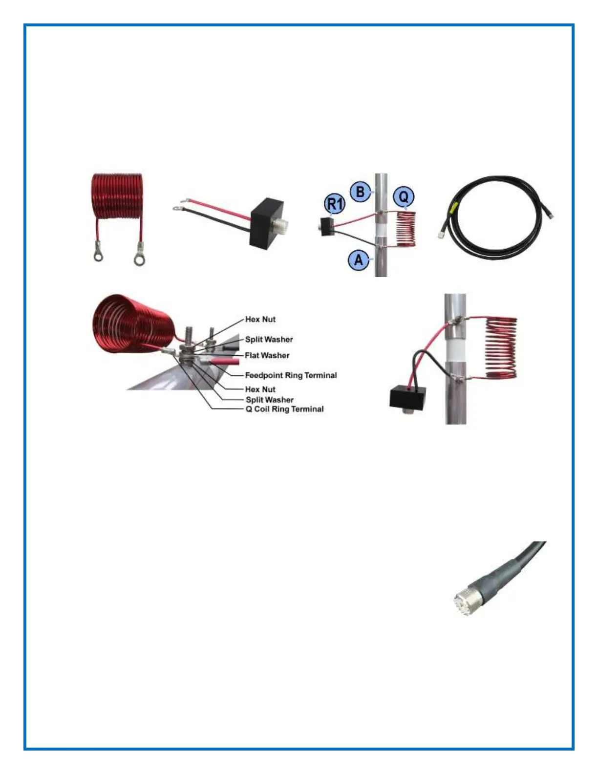 53. Install the Red Coil (Q) and the Feedpoint Connector (R1) in place as shown below. The Red