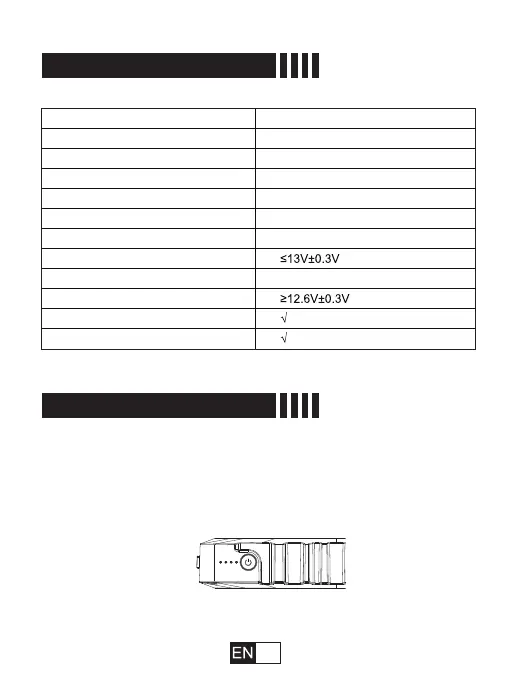 Press the power button to check the capacity of the Jump starter. Indicator Lights as