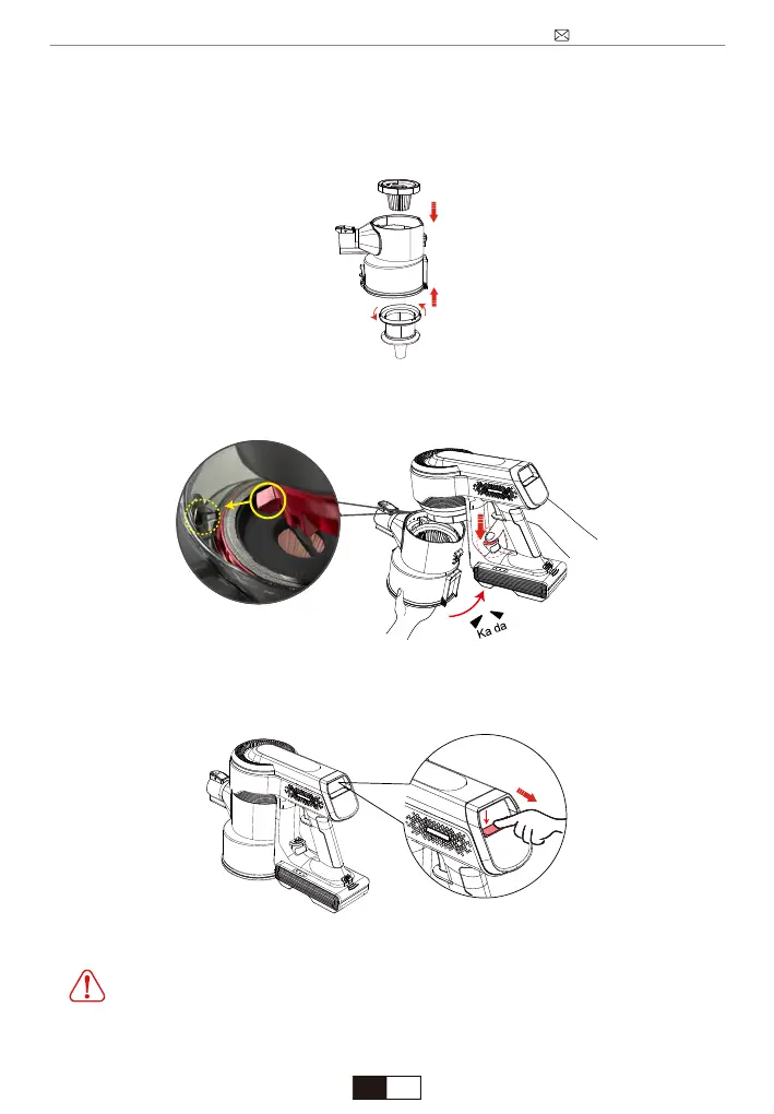 • Align the convex part of the handle with the concave part of the dust cup and insert it,