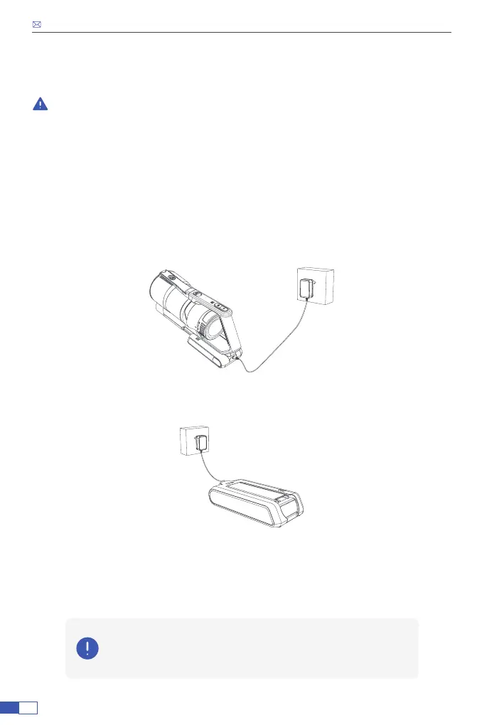 vacuum cleaner. Plug the power adapter to charge.