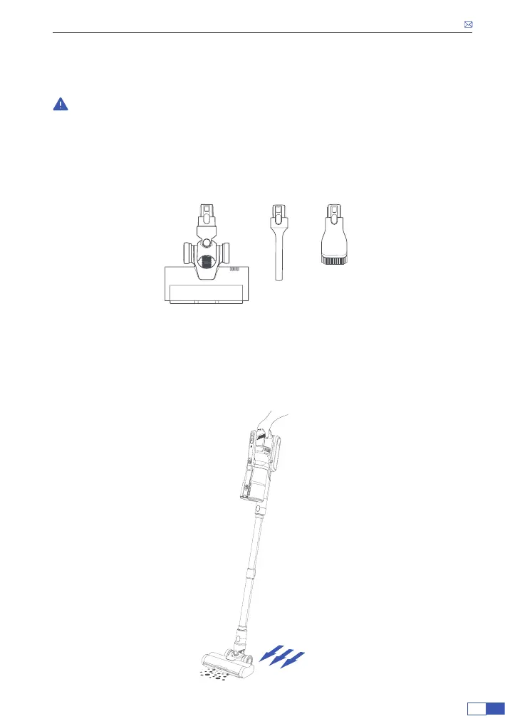 2. 掃除機の吸口を掃除対象物の表面に向けて前進させます。使う