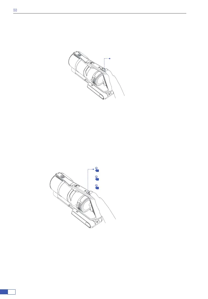 3. ON / OFF ボタンを押して、最低吸力レベルで掃除機を起動しま