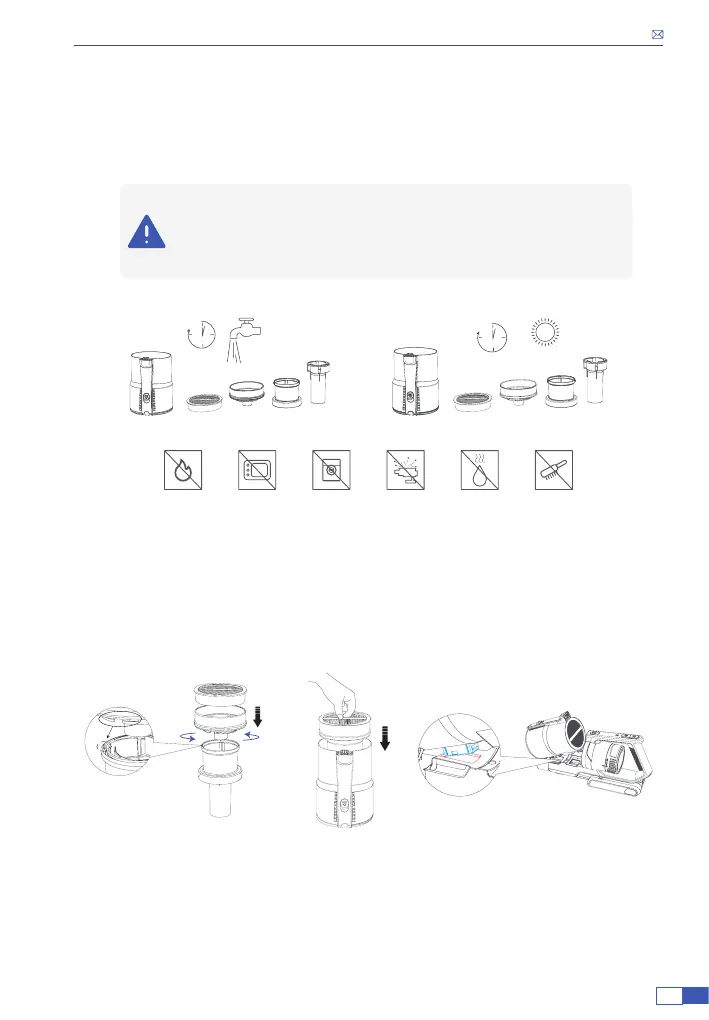 HEPA フィルターとステンレスフィルターは乾燥後に使用してください。