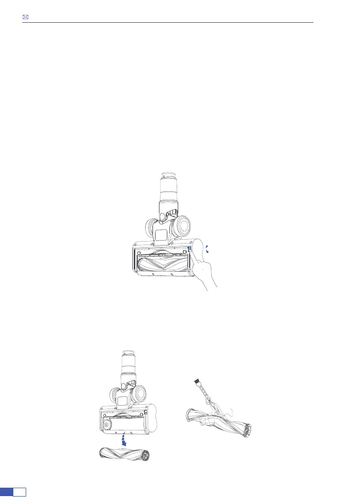 ブラシ上のブラシリリースボタンを押してローラーブラシを取り出しま