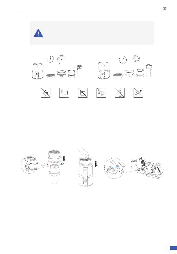 Place the clean and thoroughly dried HEPA lter and the metal lter back