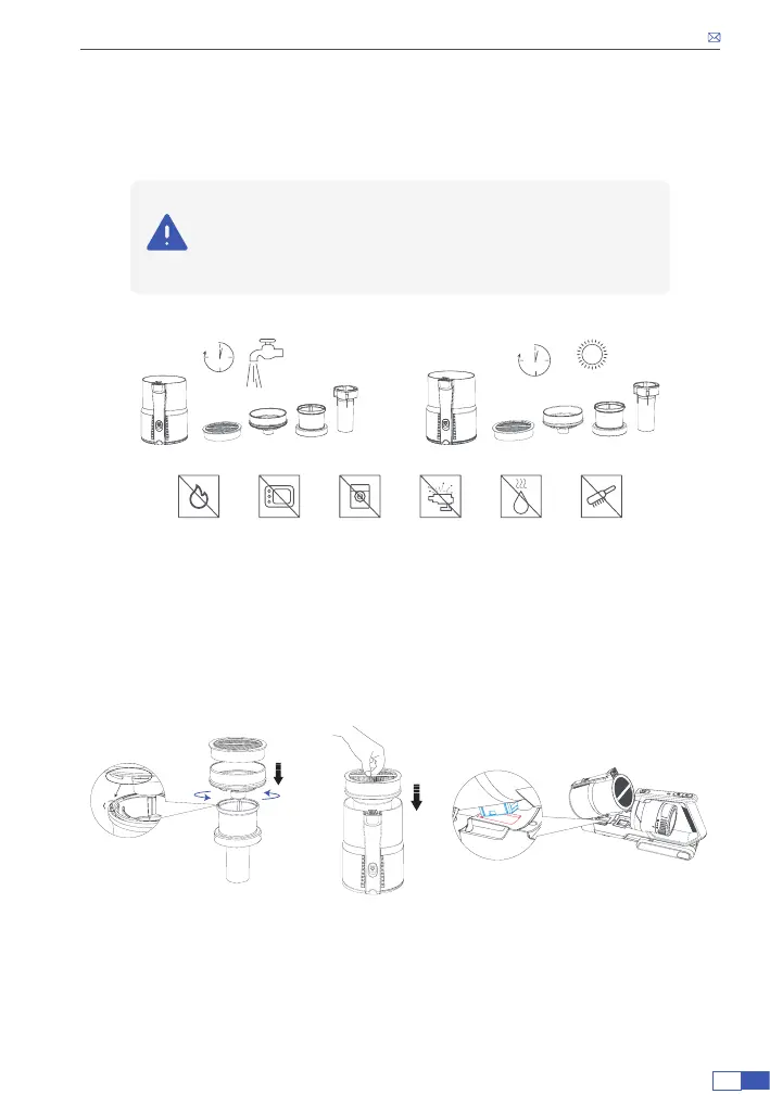 Sonne aussetzen oder einen Haartrockner verwenden, da dies den Filter