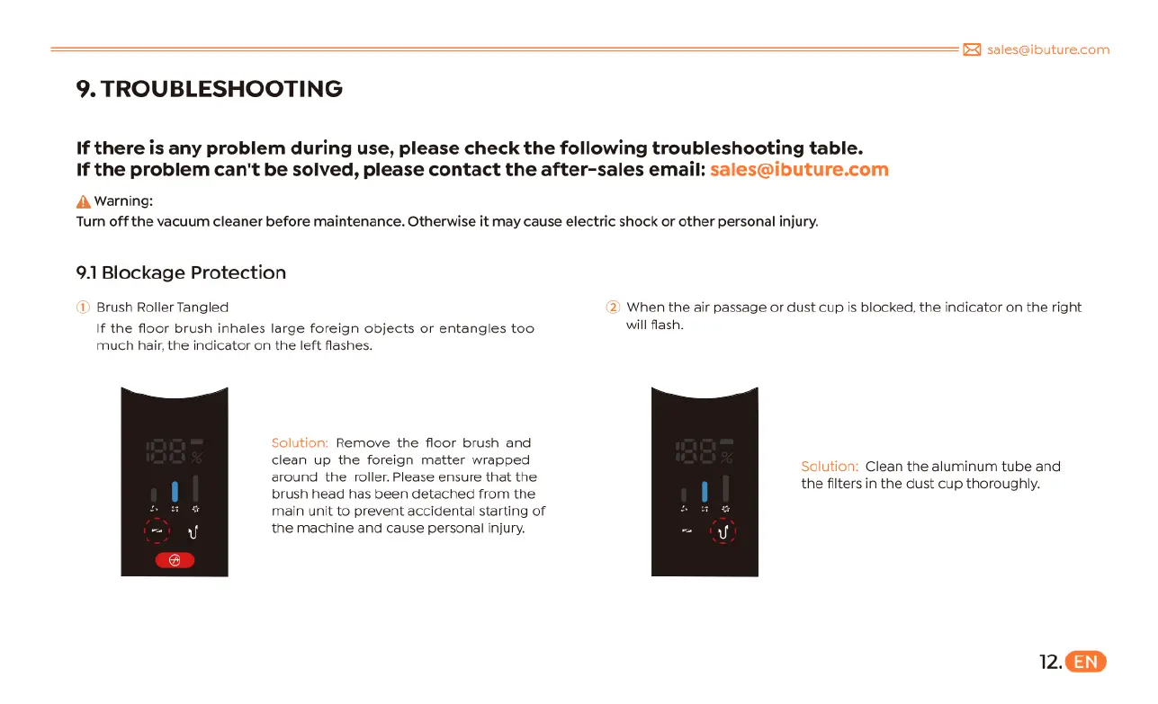 BUTURE JR700 - Troubleshooting Blockage Protection; Blockage Protection Indicators