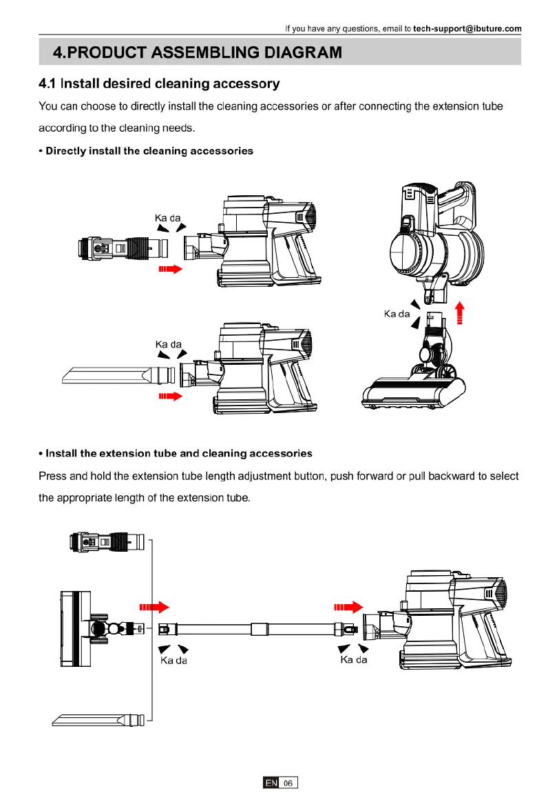 BUTURE VC10 - PRODUCT ASSEMBLING DIAGRAM; Install Desired Cleaning Accessory